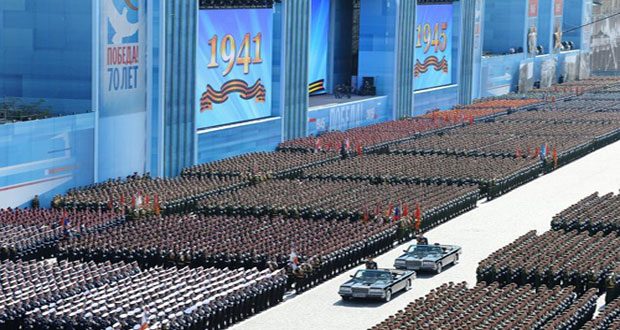 2015-05-09موسكو- ساناشهدت الساحة الحمراء بموسكو اليوم عرضا عسكريا هو الأضخم في تاريخ روسيا بمناسبة الذكرى الـ70 لعيد النصر على النازية.وشارك في العرض العسكري بموسكو نحو 16 ألف عسكري و190 قطعة من المعدات الحربية و150 طائرة ومروحية. موسكو 2015-05-09admin