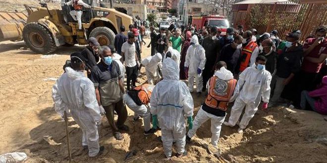 وشدد المرصد على أن تكرار انتشال مئات جثامين الشهداء من مقابر جماعية في مشافي القطاع أمر مفزع، يستوجب تحركاً دولياً عاجلاً للتحقيق في ظروف إقامة هذه المقابر وظروف استشهاد الضحايا الذين دفنوا فيها.