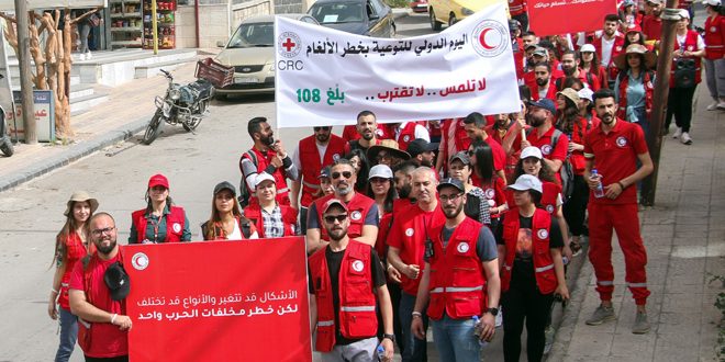 وذكر رئيس فرع الهلال الأحمر في السويداء المحامي أنور علم الدين في تصريح لمراسل سانا أن المسير الذي استمر ساعتين يضاف إلى ما يقوم به المتطوعون على مدار العام من مبادرات ورسائل توعوية بهدف تفادي خطر الألغام ومخلفات الحرب على السلامة العامة والإنسان.