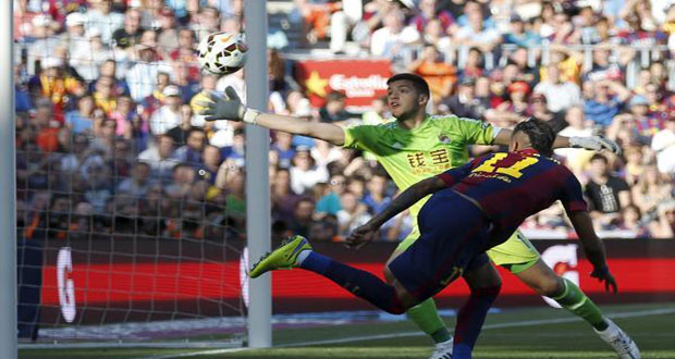 سجل أهداف برشلونة نجمه البرازيلي نيمار في الدقيقة 51 وبيدرو في الدقيقة 85، ليرفع رصيد الفريق إلى 90 نقطة بينما تجمد رصيد ريال سوسييداد عند 43 نقطة بالمركز الحادي عشر.