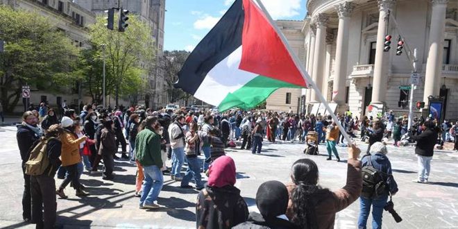 وتتواصل الاحتجاجات الداعمة للشعب الفلسطيني والرافضة للعدوان الإسرائيلي على قطاع غزة في الجامعات الأمريكية وسط حملة اعتقالات واسعة شنتها الشرطة الأمريكية، وطالت مئات الطلاب المتظاهرين.