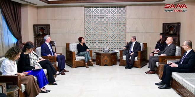 بحث وزير الخارجية والمغتربين الدكتور فيصل المقداد مع المديرة الإقليمية لبرنامج الأغذية العالمي كورين فلايشر والوفد المرافق التعاون القائم بين سورية والبرنامج والمشاريع التي يدعمها، وخاصةً تلك المتعلقة بدعم الأطفال والأمهات والإنعاش المبكر، والتي يجب أن تساهم في تعزيز منعة وصمود الشعب السوري في مواجهة عواقب الزلزال وتغيرات المناخ.