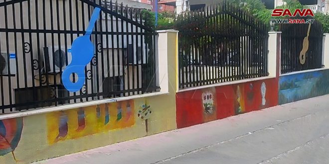 لوحات فنية بهوية بصرية جمالية مستوحاة من خصوصية مدينة اللاذقية ومعالمها التاريخية، أضافها أساتذة وخريجوا مركز الفنون التشكيلية على جدران سور المركز في حي المشروع السابع بمدينة اللاذقية.
