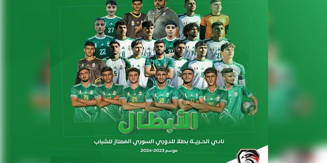 توج نادي الحرية بلقب بطولة الدوري الممتاز لفئة الشباب للموسم الحالي بعد فوزه على الاتحاد أهلي حلب بهدفين لهدف في إياب تحديد المركزين الأول والثاني.