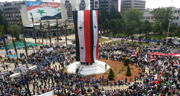 وأضاف أن “جماهير حمص تعطى من هذه المدينة وهذا الموقع رسالة الى العالم بأن زمن الانتصار جاء وسيستمر حتى القضاء على الارهاب “مؤكدا أن حمص ستبقى عصية على الارهاب وأن الحرب الاعلامية والشائعات لن تقدر على النيل من صمود وارادة السوريين الذين يظهرون اليوم هذه الحقيقة.