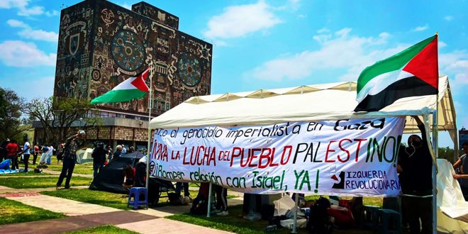 اعتصم مئات الطلاب والناشطين المؤيدين للشعب الفلسطيني والمطالبين بوقف العدوان الإسرائيلي عليه أمام جامعة المكسيك الوطنية المستقلة في مكسيكو، وهي أكبر جامعة في البلاد.