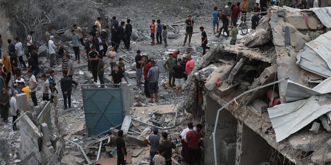 وشن طيران الاحتلال غارة على عبسان الجديدة شرق خان يونس جنوب القطاع، كما قصف بالمدفعية وبالطيران مناطق شرق مخيم البريج والمغراقة والزهراء وشمال جسر وادي غزة وسط القطاع، تزامناً مع قصف مماثل على المناطق الشرقية من حي الزيتون جنوب شرق مدينة غزة وحي تل الهوا جنوبها.