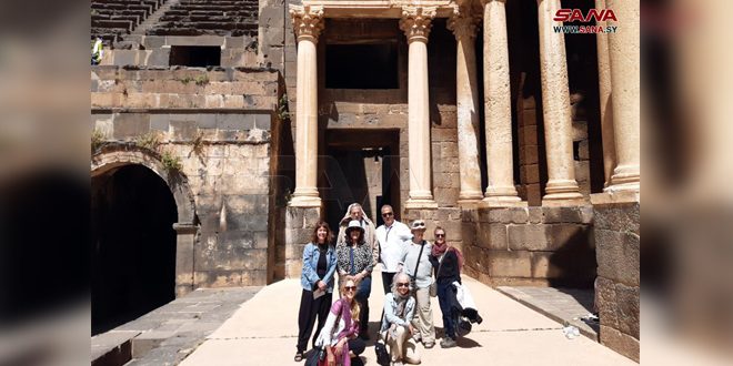 زارت اليوم مجموعة سياحية من دول عدة تضم أطباء ومهندسين وموظفي شركات مدينة بصرى الشام بمحافظة درعا، وأبدت إعجابها بالمواقع الأثرية التي تدل على حضارات تعود لآلاف السنين.
