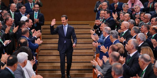 من أولى هذه التحديات التي نواجهها الآن كحزب هي بناء مؤسسة الحزب، وهو ليس تحدياً حزبياً مجرداً، لا نتحدث عن تطوير الحزب وكأنه بنية مستقلة عن كل البنى الموجودة في الوطن، هو تحد عام، في سورية لدينا مشكلة في الثقافة المؤسسية على المستوى العام، نراها في الدولة، نراها في المؤسسات خارج الدولة، ونراها في المجتمع بشكل عام، وإن كنا قد قطعنا بعض الخطوات على مستوى الدولة في بناء المؤسسات فالطريق أمامنا ما زال طويلاً، أما على مستوى الحزب، فالانتخابات التي خضتموها مؤخراً بالإضافة لما سبقها منذ عدة سنوات هي أيضا خطوة باتجاه العمل المؤسسي، ولكن لا بد وخاصة بعد هذه الانتخابات وبعد هذا الاجتماع الموسع أن تكون هناك خطوات تتمة لهذه الخطوة الهامة في طريق بناء مؤسسة حزب البعث، ولكن يجب أن تنطلق من حوار معمق على كل المستويات الحزبية، كما فعلنا خلال العام الماضي عندما ناقشنا النظام الذي يحكم الانتخابات التي نختمها اليوم بانتخابات اللجنة المركزية والقيادة المركزية.