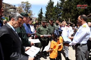 بمناسبة يوم المرور العالمي وأسبوع المرور العربي أقامت وزارة الداخلية اليوم بالتعاون مع وزارة التربية ومحافظة دمشق فعالية احتفالية في الحديقة المرورية بمنطقة باب مصلى بدمشق تعبيراً عن الاهتمام بمرفق المرور.
