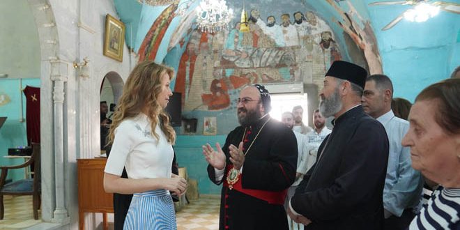 وزارت السيدة الأولى كنيسة مارجرجيوس للسريان الأرثوذكس التي بنيت قبل مئة عام والتقت القيّمين عليها.