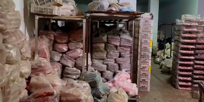 ضبط فرع الأمن الجنائي بريف دمشق أكثر من 35 طناً من اللحوم الفاسدة، وذلك ضمن براد في مستودع بمنطقة البرامكة في مدينة دمشق.