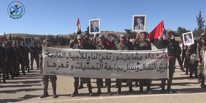 أحيت قواتنا المسلحة الباسلة اليوم ذكرى عيد شهدائنا الأبرار أكرم من في الدنيا وأنبل بني البشر، وألقى قادة الوحدات والتشكيلات كلمات أشاروا فيها إلى معاني هذه المناسبة ودلالاتها التي جاءت تخليداً لبطولات الشهداء وتضحياتهم، مشددين على أن نهج البطولة والتضحية راسخ في وجدان أبناء سورية الإباء جيلاً بعد جيل.