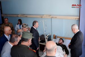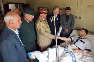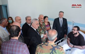 وشملت الجولة التي شارك فيها رئيس مجلس المحافظة المهندس تيسير حبيب وأمين فرع حزب البعث العربي الاشتراكي المهندس هيثم إسماعيل مشفى الشهيد زاهي أزرق ومشفى الأسد العسكري، للاطمئنان على صحة الجرحى والاطلاع على أوضاعهم واحتياجاتهم، وتقديم الهدايا لهم تقديراً وعرفاناً لما بذلوه في سبيل حماية وطنهم وشعبهم.