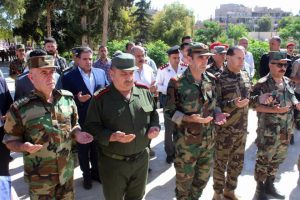 وتمت أيضاً إقامة احتفالية بمناسبة عيد الشهداء تضمنت زيارة إلى مقبرة الشهداء بمحافظة دير الزور، شارك فيها قائد شرطة المحافظة العميد قصي طراف، وعدد من ضباط قوى الأمن الداخلي، ووضعوا إكليلاً من الزهور على ضريح الجندي المجهول والتقوا عدداً من أسر الشهداء وقدموا التهنئة لهم بهذه المناسبة.