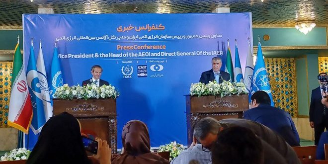 وشدد إسلامي خلال لقائه المدير العام للوكالة الدولية للطاقة الذرية رافائيل غروسي اليوم على هامش المؤتمر الدولي للعلوم والتكنولوجيا النووية الإيرانية المنعقد في أصفهان على أن “المسألة المهمة بالنسبة لإيران هي الحذر من التلميحات العدائية ضد برنامجها النووي السلمي والتي يقف وراءها الكيان الصهيوني، بحيث لا يؤثر ذلك على التعاملات بين طهران والوكالة”.