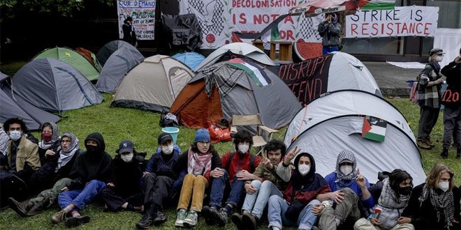 وذكرت وكالة أسوشيتد برس أن الشرطة الألمانية اقتحمت اليوم فناء جامعة برلين وفضت بالقوة احتجاجاً نظمه عدة مئات من النشطاء المؤيدين للفلسطينيين تنديداً بالعدوان الإسرائيلي على قطاع غزة، واستخدمت الشرطة رذاذ الفلفل ضد المتظاهرين الذين نصبوا نحو 20 خيمة وشكلوا سلسلة بشرية حول الخيام فيما غطى معظم المتظاهرين وجوههم بأقنعة طبية ولفوا الأوشحة الكوفية حول رؤوسهم مرددين شعارات مثل: “تحيا فلسطين”.
