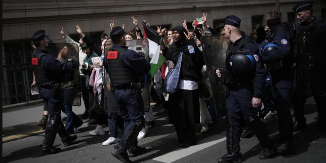 أخلت الشرطة الفرنسية بالقوة قاعة في جامعة السوربون اعتصم فيها طلاب مؤيدون لفلسطين مستخدمة الهراوات ضد المحتجين.