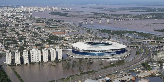 ووصل نهر غويبا الذي يمرّ عبر بورتو أليغري إلى مستويات تاريخية فيما حذّر المسؤولون الثلاثاء من أنّ خمسة سدود معرّضة لخطر الانهيار.