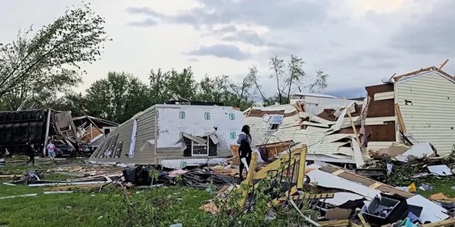 اجتاحت عواصف شديدة الولايات المتحدة بعد إعصارين ضربا إحدى مدن ولاية ميشيغان ودمرا المنازل والمباني التجارية.
