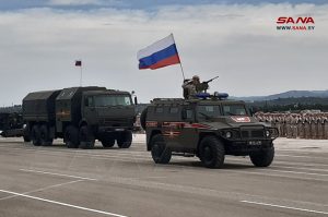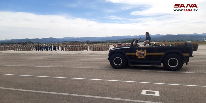 وتضمن الاحتفال عرضاً عسكرياً شاركت فيه وحدات وتشكيلات عسكرية متنوعة من الجيشين العربي السوري والقوات الروسية العاملة في سورية.