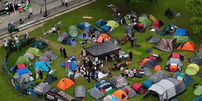 وبدأ المتظاهرون تحركهم تضامناً مع فلسطين يوم الجمعة الماضي على خلفية تزايد هذه التحركات والاحتجاجات الواسعة المؤيدة للشعب الفلسطيني في أوروبا والولايات المتحدة، حيث نصبوا عشرات الخيم في أماكن عدة داخل الحرم الجامعي، وسدوا بمقاعد مداخل المكتبة التي تضم “كتاب كيلز” وهو مخطوطة شهيرة من العصور الوسطى يأتي السياح لرؤيتها في العاصمة الإيرلندية.