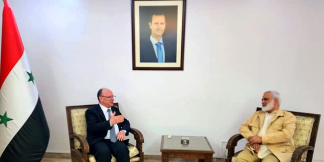 بحث وزير التعليم العالي والبحث العلمي الدكتور بسام إبراهيم خلال لقائه اليوم مع رئيس جامعة المصطفى فرع طهران وشمال إفريقيا سجاد هاشميان والوفد المرافق علاقات التعاون العلمي والبحثي بين البلدين.
