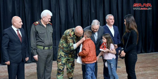 وعبر المكرمون عن أهمية التكريم ورمزيته في نفوسهم مؤكدين الاستمرار بالسير على نهج الشهداء الأبرار دفاعاً عن الوطن حتى تحرير كامل تراب سورية.