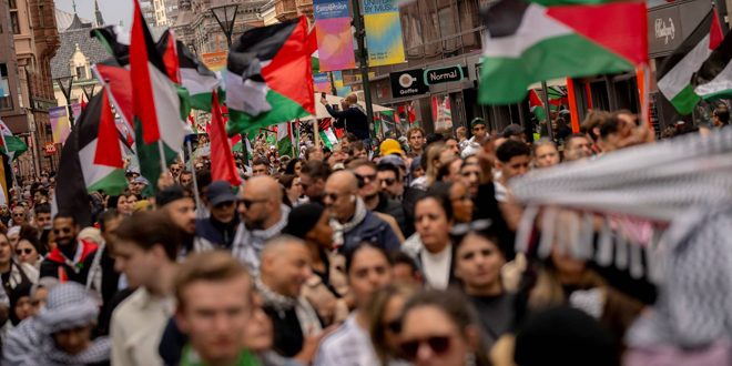 تظاهر الآلاف في مدينة مالمو السويدية احتجاجاً على مشاركة كيان الاحتلال الإسرائيلي في مسابقة الأغنية الأوروبية “يوروفيجن” التي تقام نهاية هذا الأسبوع في السويد.