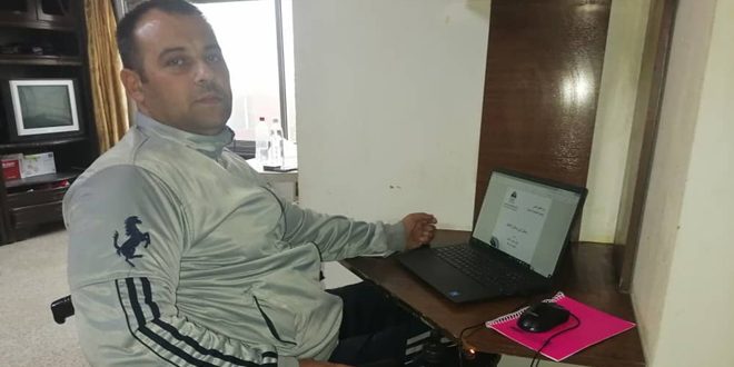 ينظر مصطفى إلى حالته التي تسمى ” الشلل الرباعي ” كوسام عز وعنوان تحدٍ وإرادة ناله بشرف في ميادين إثبات الحق والوجود ووحدة الأرض لينطلق منها للتسجيل ببرنامج الإجازة في الإعلام والاتصال بالجامعة الافتراضية السورية بعد أن وفر له مشروع جريح الوطن الفرصة لدراسة هذا الاختصاص بشكل يتناسب مع وضعه الصحي الجديد.