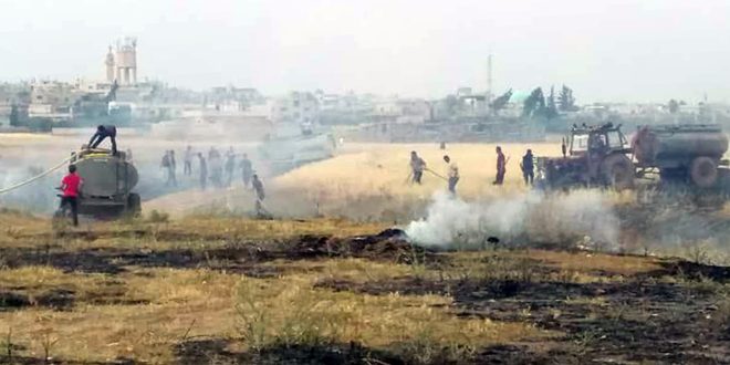 نشب حريقان في حقول زراعية ببلدتي الطيبة وغصم بريف درعا الشرقي ما أدى إلى احتراق أكثر من 650 دونماً مزروعة بالشعير والقمح.