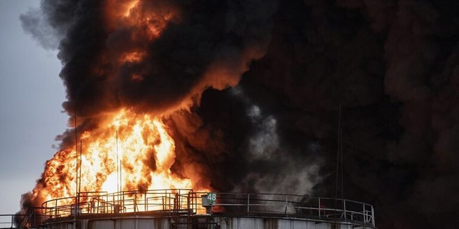 وكتب باسيتشنيك عبر قناته على التلغرام: “فتح العدو النار على مدينة روفينكي الهادئة، وبسبب القصف، اشتعلت النيران في مستودع للنفط، كما تضررت المنازل المحيطة به”.