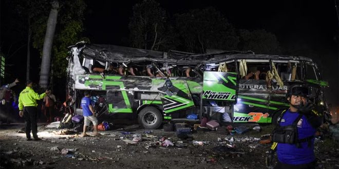 لقي 11 شخصاً على الأقل مصرعهم، بينهم تسعة تلاميذ وأصيب العشرات بجروح جراء حادث سير تعرّضت له حافلة مدرسية في جزيرة جاوا الإندونيسية.