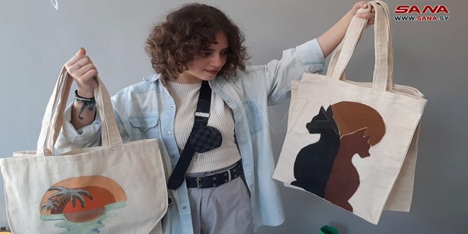 وظفت الشابة شهد القنطار من مدينة شهبا بالسويداء موهبتها الفنية وشغفها بالعمل اليدوي للانطلاق في تأسيس مشروع إنتاجي للرسم والطباعة على الحقائب الخام والكتان.