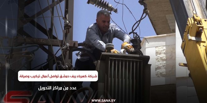 شركة كهرباء ريف دمشق تواصل أعمال تركيب وصيانة عدد من مراكز التحويل وزيادة استطاعة المحولات