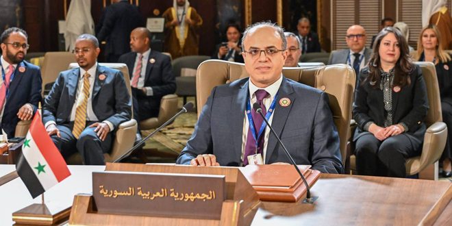 وفي كلمة سورية أكد رئيس الوفد وزير الاقتصاد والتجارة الخارجية الدكتور محمد سامر الخليل أن العالم العربي يتعرض لتحديات كبيرة تتطلب منا المثابرة والعزيمة للنهوض باقتصادات بلداننا وسلوك مسارات التنمية التي من شأنها تخفيف الأزمات عن الشعوب العربية.