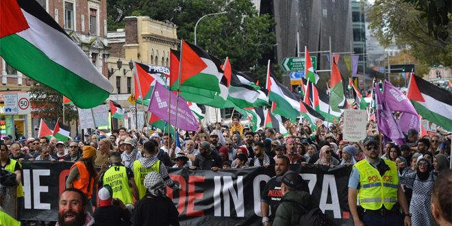 شارك الآلاف في مظاهرة خرجت اليوم في مدينة سيدني الأسترالية، تنديداً بالعدوان الإسرائيلي المتواصل على الشعب الفلسطيني في قطاع غزة.
