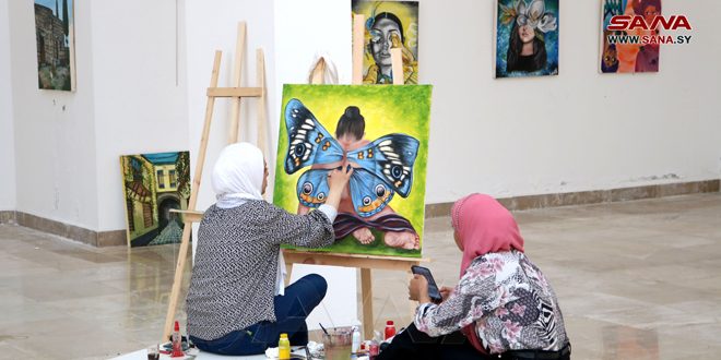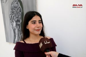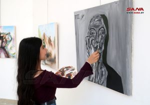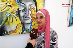 فيما لفتت الفنانة التشكيلية “لين إسكندر” إلى أهمية احتضان الإنسان لأخيه الإنسان بلوحة حملت عنوان الاحتواء، وأخرى جسدت المعاناة والسنوات العجاف التي مرت على سورية.