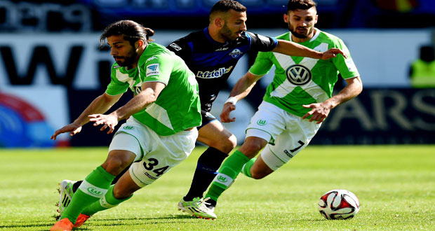 فاز فولفسبورغ على بادربورن 3-1 في دوري الدرجة الأولى الألماني لكرة القدم اليوم ليضمن التأهل إلى دور المجموعات بدوري أبطال اوروبا الموسم القادم قبل جولتين من نهاية المسابقة المحلية.