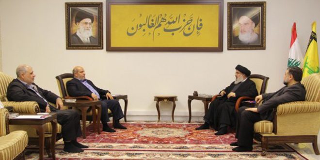 بحث الأمين العام لحزب الله في لبنان السيد حسن نصر الله مع وفد قيادي من حركة المقاومة الفلسطينية (حماس) برئاسة خليل الحية اليوم الأحداث والتطورات القائمة في قطاع غزة خصوصاً وفلسطين المحتلة عموماً.