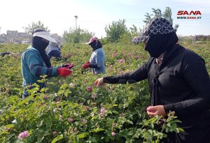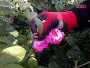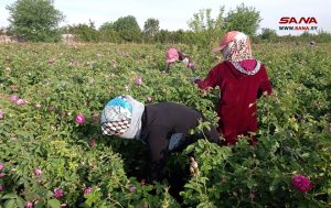 وأوضح المزارع خالد سليمان الذي يملك مساحة ثلاثة دونمات مزروعة بالوردة الشامية أنه يقوم بالعناية المتواصلة بحقله من حراثة وتسميد وسقاية ومعالجته من أخطار الأوبئة وأثناء موسم القطاف يحرص على الحضور باكراً وجني المحصول كل يوم، مستعرضاً الفوائد الغذائية الكبيرة للورود ومنتجاتها الكثيرة منها بصناعة العصائر والمربيات والعطور.
