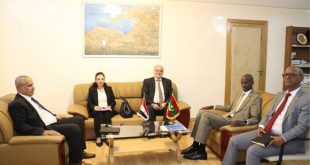 بحث وزير التجهيز والنقل الموريتاني محمد عالي ولد سيدي محمد مع السفير السوري في نواكشوط قصي مصطفى العلاقات الثنائية وسبل التعاون الثنائي.