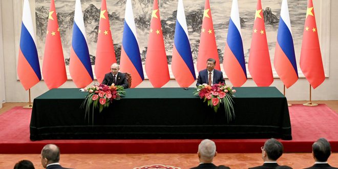 وجاء في بيان مشترك صدر اليوم عقب محادثات أجراها رئيسا الدولتين فلاديمير بوتين وشي جين بينغ ونشر على موقع الكرملين أن “روسيا والصين تدعمان سيادة واستقلال ووحدة وسلامة أراضي سورية، وتساهمان في دفع عملية التسوية السياسية التي يقودها وينفذها مواطنو هذه الدولة بأنفسهم”.