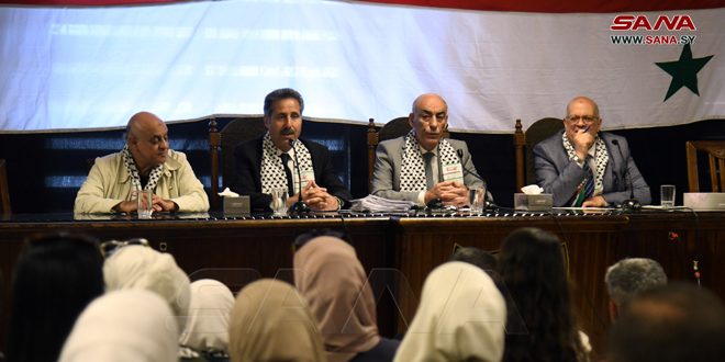 وفي كلمته أكد رئيس فرع دمشق لنقابة المحامين عبد الحكيم السعدي أن القضية الفلسطينية ستبقى القضية المركزية لكل السوريين، مبينا أنه نتيجة معركة طوفان الأقصى وتأثيراتها على كيان الاحتلال الصهيوني عادت القضية الفلسطينية إلى الواجهة مجدداً.