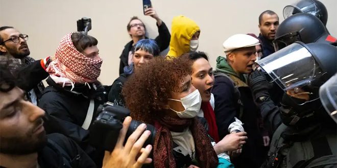 شهدت العاصمة الألمانية برلين احتجاجاً طلابياً تنديداً بالعنف والضغوطات التي تمارسها السلطات المحلية ضد المناهضين للجرائم الإسرائيلية بحق الشعب الفلسطيني.