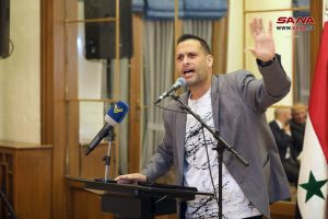 الشاعر الزجلي الفلسطيني عمر زيداني، قال: “مضمون مشاركتي اليوم هو موضوعي فلسطين والمقاومة، ففلسطين هي محور الوجع، وكما نتقاسم مع سورية الحياة، نتقاسم الوجع ونتقاسم القصيد، فشطر لسورية وشطر لفلسطين، مضيفاً: “إن المقاومة ليست مقتصرة على السلاح فقط، وإنما أيضاً الكلمة هي سلاح فعّال وقادر على تحرير الشعوب”.