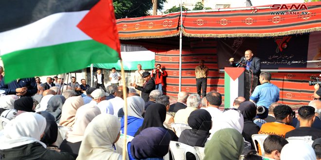 أمين فرع ريف دمشق لحزب البعث العربي الاشتراكي المهندس رضوان مصطفى أشار إلى أن ما يكتبه الشعب الفلسطيني الصامد في غزة والمقاومة الباسلة للشهر الثامن من عملية طوفان الأقصى زلزل الكيان الصهيوني وداعميه مؤكدا أن القضية الفلسطينية ستبقى القضية المركزية لسورية قيادة وشعبا.