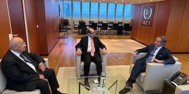 بحث نائب وزير الخارجية والمغتربين بسام صباغ مع رافائيل ماريانو غروسي المدير العام للوكالة الدولية للطاقة الذرية في فيينا اليوم التعاون القائم بين سورية والوكالة في عدد من المجالات، من بينها دعم اللجنة الوطنية السورية لمكافحة السرطان.