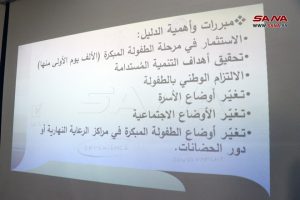من جهته أوضح منسق المركز الإقليمي لتنمية الطفولة المبكرة عبد المنعم مسعود أن هذه الجلسات التشاورية جاءت وفق الاتفاقات المبرمة بين المركز ووزارة الشؤون الاجتماعية والعمل حول الدليل التدريبي الذي يعتبر هو الأول من نوعه الذي يهتم بحياة الطفل من عمر يوم وحتى الثلاث سنوات، لأنها تؤثر في تكوينه ونمائه العام، وتمكن جليسات الأطفال من التعرف على مهارات التعامل مع هذه الفئة العمرية.