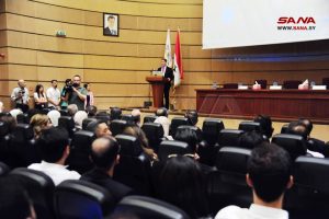 رئيس جامعة دمشق الدكتور محمد أسامة الجبان بين في كلمة أهمية تعزيز المعرفة العلمية للطبيب وتبادل الخبرات والتجارب في المجال العملي، مشيراً إلى أن الجامعة تدعم كل الأنشطة التي من شأنها رفع المستوى العلمي والمعرفي للطلاب.